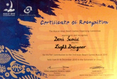 Priznanje Olimpijskog odbora Azije za sudjelovanje u realizaciji ceremonije otvaranja i zatvaranja
