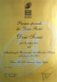 Nagrada za izuzetan doprinos kazališnoj umjetnosti- Oblikovanje svjetla u predstavama: "FILUMENA MARTURANO" HNK Ivana Pl. Zajca Rijeka, "EKVINOCIJO" Ansambla Dubrovačkih ljetnih Igara.