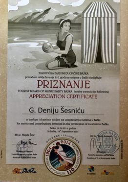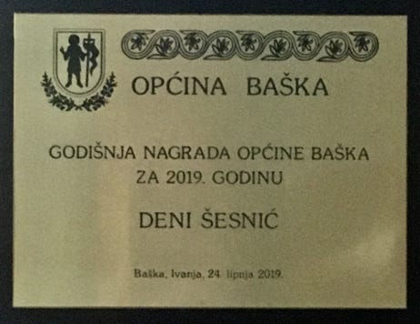 Priznanje Turističke zajednice općine Baška za zasluge i doprinos unapređenju turizma u Baški, 2019.