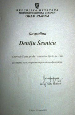 Priznanje grada Rijeke na ustrajnom umjetničkom djelovanju.